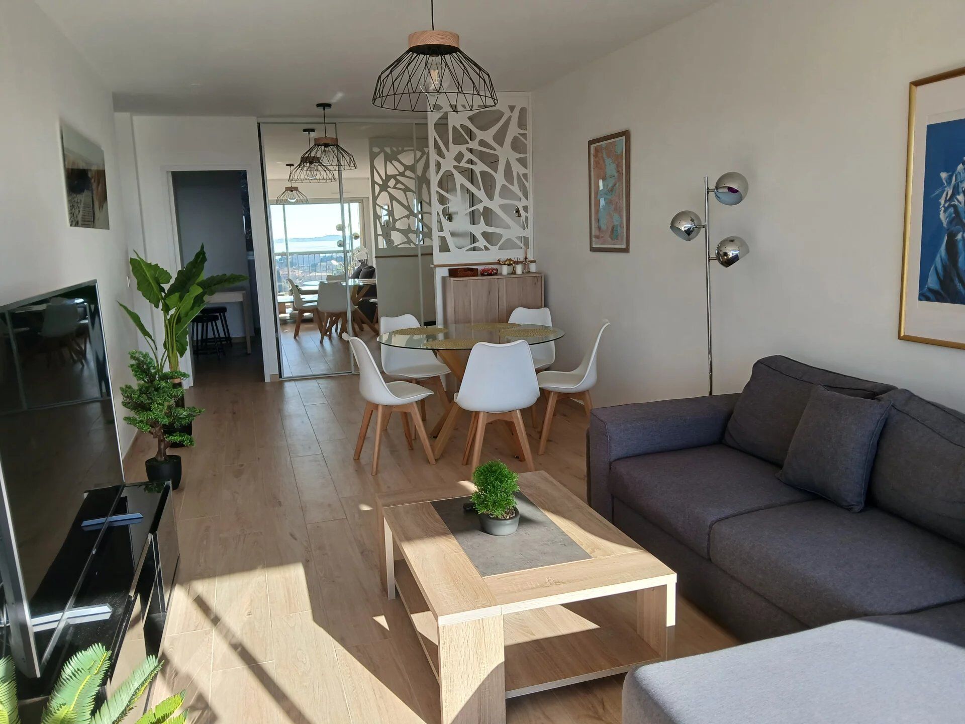 , magnifique 3 pièces de 65 m2 rénové en 2025 avec des matériaux nobles, le lumineux séjour et une chambre profitent d'une belle terrasse plein sud et de sa vue mer, une cuisine aménagée et équipée dispose d'un espace buanderie, 2 chambres avec placards, une jolie salle de douche, des toilettes suspendues et séparées, des rangements, une cave et un parking sécurisé, COUP de COEUR ASSURE